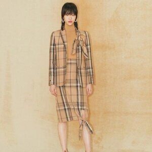 New Burberry Knot Detail Nova Check Driftwood Pattern Pencil Skirt NWT 0 US/2 UK