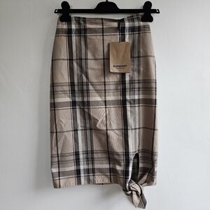 New With Tag Burberry Knot Detail Classic Nova Check Print Pencil Skirt