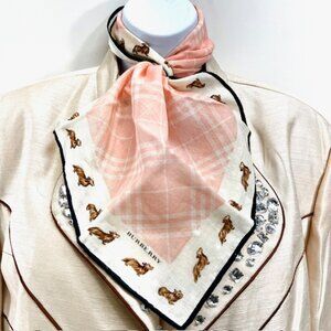 #17) New Burberrys women Miniscarf/handkerchief 19.5" Square , made from fine cotton , ivery pink check with dogs and black trim, made in Japan