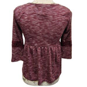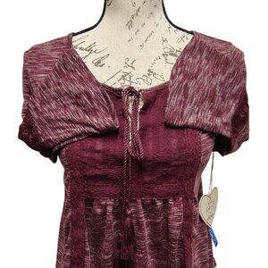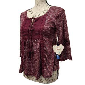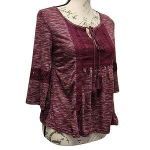 New Burgundy Lace & Knit Peasant Peplum Top Bell Sleeves - Boho Hippie Fall Folk
