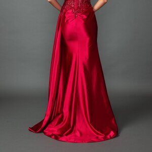 New Burgundy Long Evening Sheath Gown w/ Side Drape & Sexy Leg Slit DQ 4552