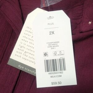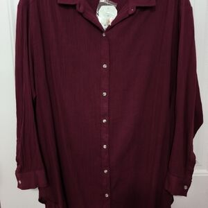 New Burgundy Oversized Button Shirt / 2X