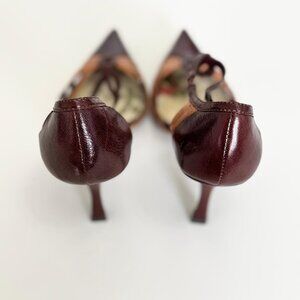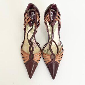 New Burgundy & Tan Strappy Closed Toe Heels Shoes by Charles David, Size 6.5