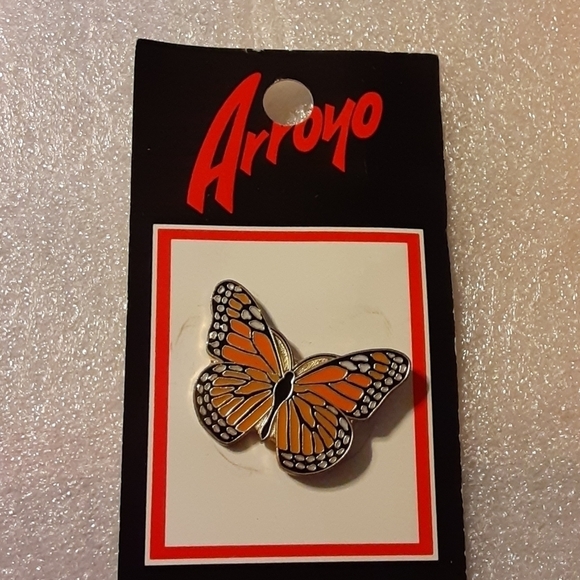 Butterfly Pin NEW. Goldtone with black and orange. Size 1 and 1/4 X 1 inches