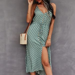 New Button Through Drawstring Waist Polka Dot Cami Dress Mint Green 226