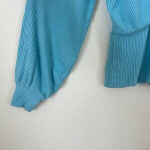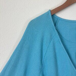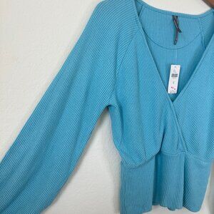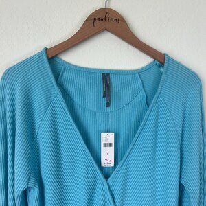 New By Anthropologie Sweater Womens Medium Blue Ribbed Soft Faux Wrap Top M