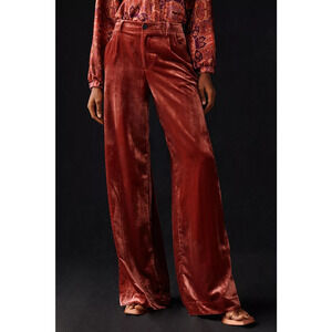 New By Anthropologie Wide-Leg Velvet Trousers $148 SIZE 6T Wine