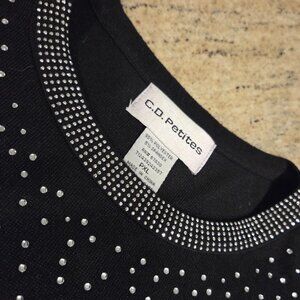 New! C. D. Petites Women XLP 3/4 Sleeve Black Rhinestone Knit Sweater Waterfall