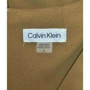 New CALVIN KLEIN Flounce Peplum Mermaid Midi Dress V-Neck Brown Career Office 2