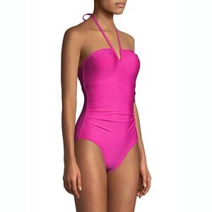 New! CALVIN KLEIN Halter Pink One-Piece Swimsuit Stretchy UV Protection Size 6