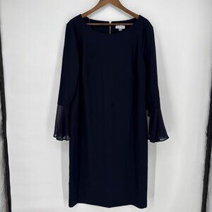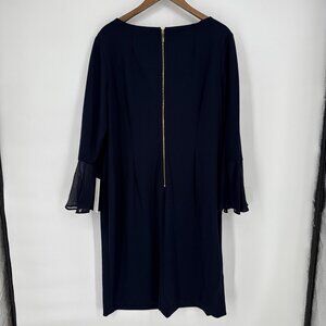 New CALVIN KLEIN Plus Size 20W Navy Blue 3/4 Bell Sleeve Boat Neck Sheath Dress