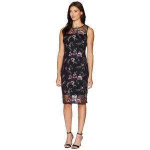 New! CALVIN KLEIN Women's Floral Embroidered Sheath Dress Black Size 8