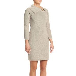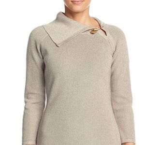 New! CALVIN KLEIN Women's Metallic Sweater Dress Ribbed Size XL Khaki Gold