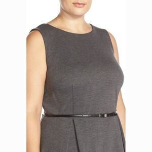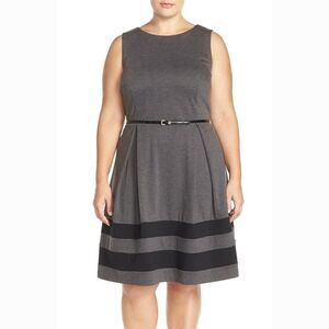 New! CALVIN KLEIN Women's Plus Size Belted Striped-Hem Ponte Dress Size 14W Gray