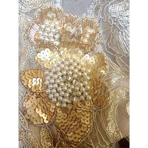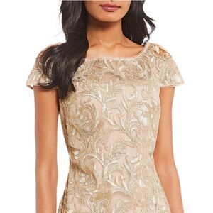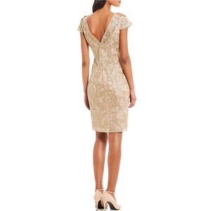 New! CALVIN KLEIN Women's Soutache Beaded Shoulder Dress V-Back Size 2 Gold