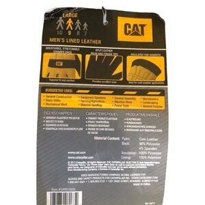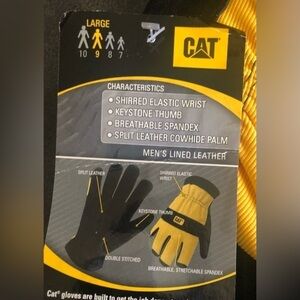 New CAT Outdoor Leather Lined Work Glove Mens Sz. L Shirred Wrist Cowhide Palm