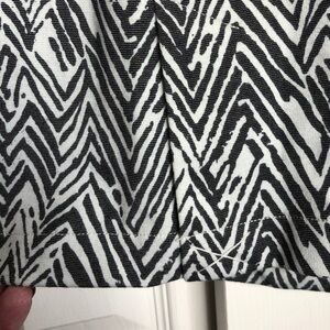 CAbi zig zag ponte knit jacket in black and white. Style #3034 features a 3-button closure , 3/4-length sleeves with tailored peplum waist. The slits on the the back are still tacked as shown in the picture. Size XS. NWOT!