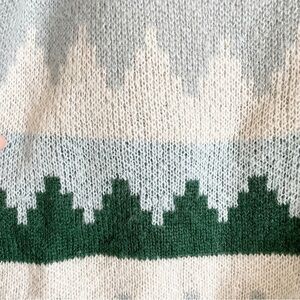 Really cute and easy cardigan sweater with 3 button front. Cool Aztec pattern in blues, cream and hunter green. V neck, long sleeve, soft knit.