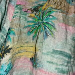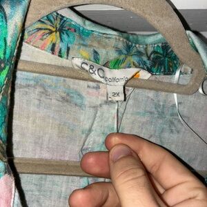 New C&C California Linen Button Shirt 2X Multi Tropical Scene Vacay Plus Size