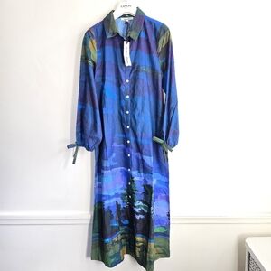 New With Tag Celina Moon Landscape Print Shirt Midi Dress - No Belt