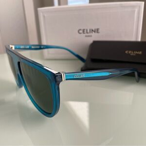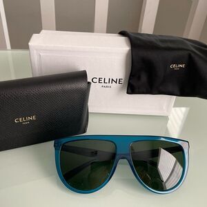 This is an authentic pair of CELINE Thin Shadow SS17 Sunglasses. These chic, unisex sunglasses have classic vintage style frames in Teal color. The lenses are a gradient tint of smoky gray and the arms are a matching teal to the frame. These are fabulous sunglasses, ideal for a cutting edge look, from Celine! *Brand new with case. Authentic brand.