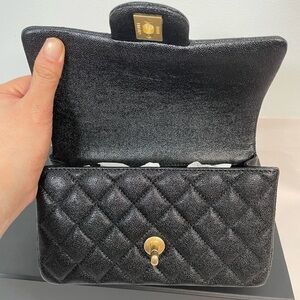 New CHANEL Caviar Quilted Mini Top Handle Rectangular Flap Bag
