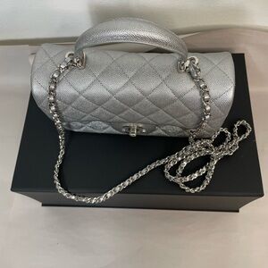 New in box never worn with sticks still on Rare authentic Chanel Top Handle or crossbody Mini Caviar Handbag. Will come with box, authenticity card, dustbag and tissue wrapping.