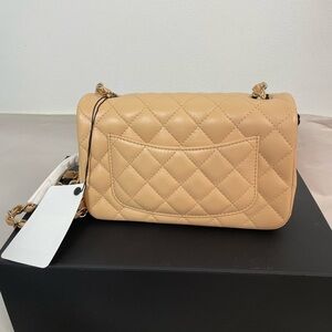 New CHANEL Gold Hardware Lambskin Quilted Mini Rectangular Flap Bag