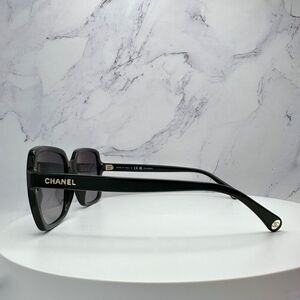New CHANEL Sunglasses Black Polarized Square Gold Logo Authentic Italy Acetate