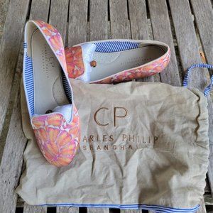 New CHARLES PHILIP Shanghai Pink Silk Smoking Slipper Loafers Shoes 7.5