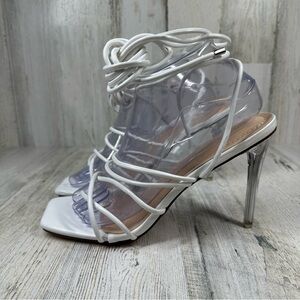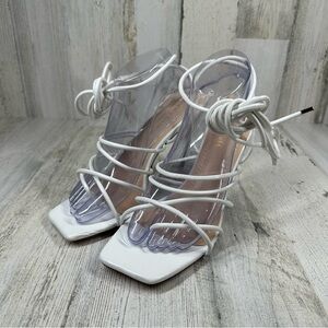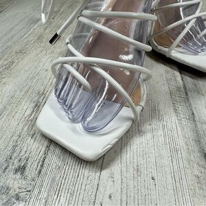 New CHASE & CHLOE Gia Clear Heel Sandal In White #505