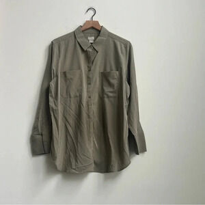 New CHICO'S SILKY SOFT DOBBY HALF-PLACKET SHIRT SZ 3 16/18 Vetiver Long Sleeve