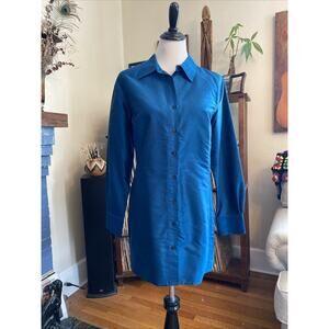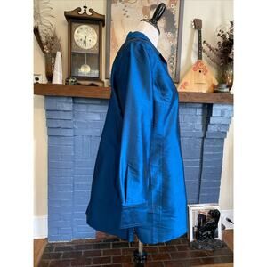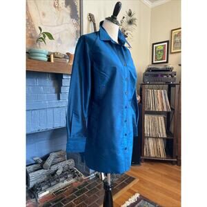 New CHICOS Sz 2 100% Silk Shimmer Blue Button Down Tunic Alianna Shirt $89 L