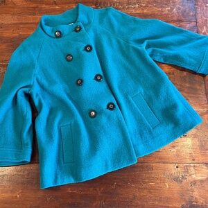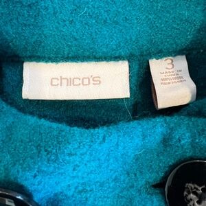 New CHICO'S Teal Blue Wool Ammi Jacket Size 3/XL