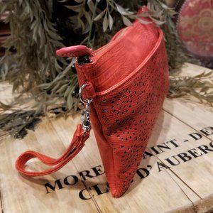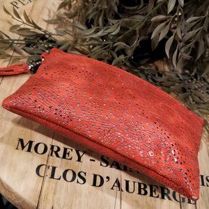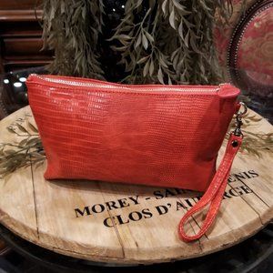 New CHICO's Pippa Perforated Medallion Reptile Embossed Clutch Burnt Orange