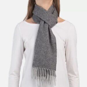 New CHRISTINA CHITI Grey Herringbone Fringed Wool Cashmere Scarf Made in Italy