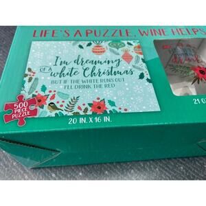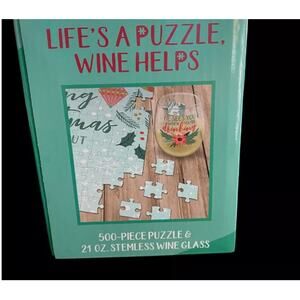 New! CHRISTMAS Life's A Puzzle, Wine Helps - Stemless Wine Glass & Puzzle Set