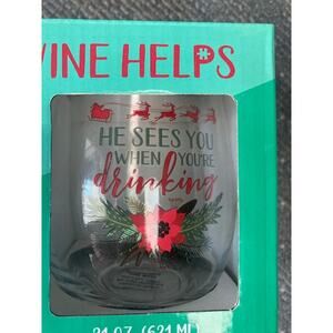 The glass reads "He Sees You When You're Drinking" and the puzzle reads "I'm dreaming of a white Christmas BUT IF THE WHITE RUNS OUT I'LL DRINK THE RED"