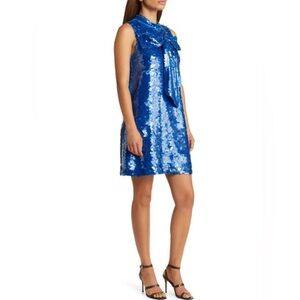 New! CIEBON Anita Bow Paillette Sequin Sleeveless Mini Shift Dress 💙 Small NWT!