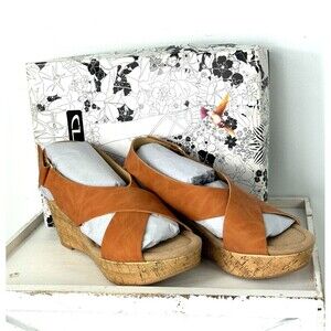 CL By Laundry Dream Girl Women Size 9 Clay Nubuck Cork Wedge Sandal Slip On Rck