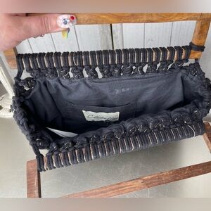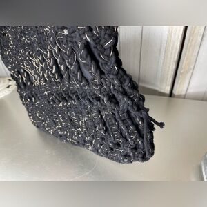 New! CLEOBELLA Wooden Handles Cotton Crochet Macrame Tote Top Handle Bag Black