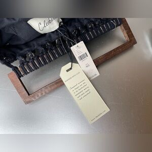 This beautiful Cleobella tote bag is made of high-quality cotton with intricate crochet and macrame design. The bag features stylish wooden handles and a spacious interior with a black cotton lining. The bag is medium-sized with a width and height of 14 inches, making it perfect for everyday use or as a stylish accessory for any outfit.