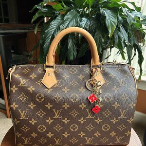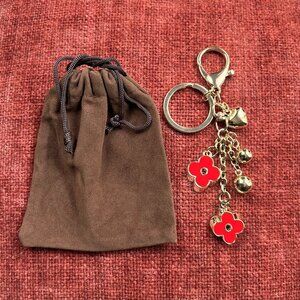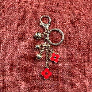 New CLOVER AND HEART Bag Charm Red Gold Tone 💕