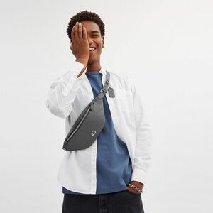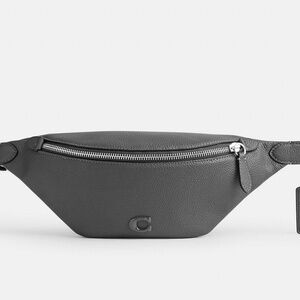 Sleek and stylish black leather belt bag, perfect for on-the-go convenience.