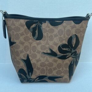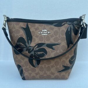 New COACH City Bucket Bag In Signature Canvas With Bow Print