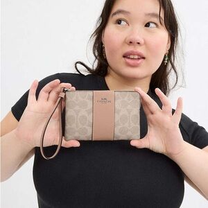 New COACH Corner Zip Wristlet In Signature Canvas With Stripe
