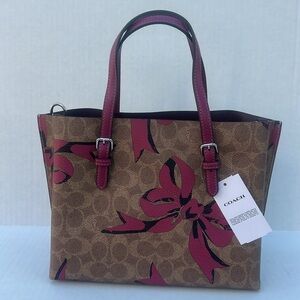 New COACH Mollie Tote Bag 25 In Signature Canvas With Bow Print