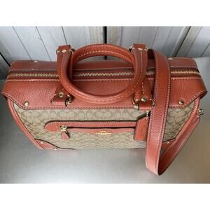 New! COACH Store Millie Satchel Colorblock Signature BROWN Canvas Studded