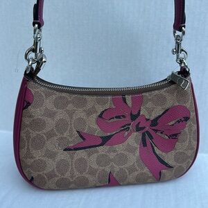 New COACH Teri Shoulder Bag In Signature Canvas With Bow Print