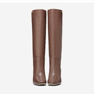 New COLE HAAN Chrystie Square brown tall block heel leather zip boots size 5